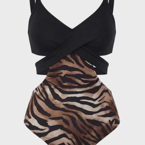 Be the first to review “Black Wrap Top Tiger Print One Piece Swimsuit with Cut Out Waist”